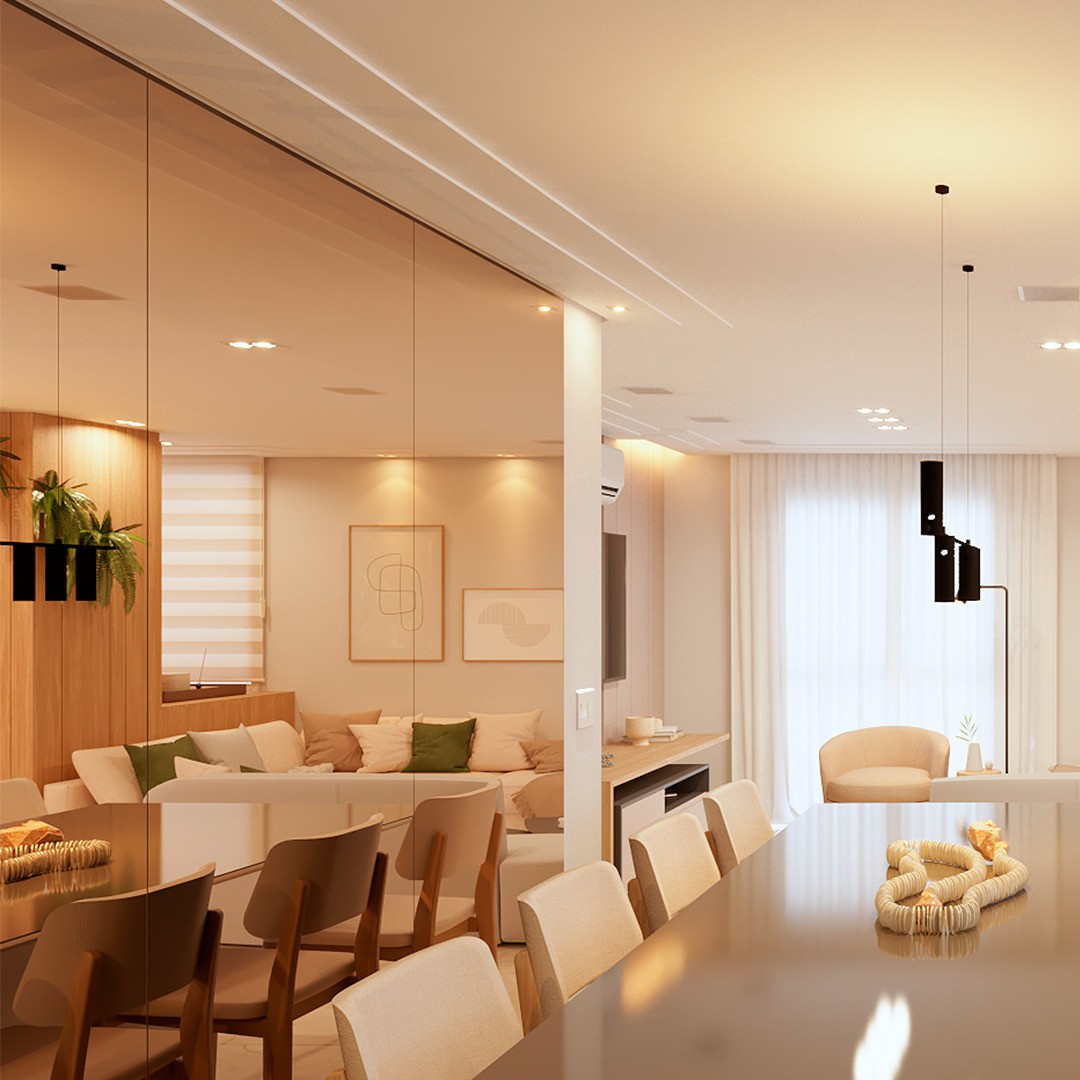 O primeiro passo é entender profundamente o seu estilo de vida, preferências e objetivos. Realizamos reuniões detalhadas para alinhar expectativas, referências e necessidades funcionais. É aqui que o projeto começa a ganhar forma com base na sua essência e nas possibilidades do espaço e orçamento.